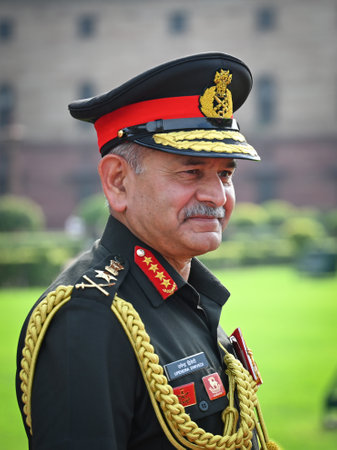 NEW DELHI, INDIA - AUGUST 20: General Upendra Dwivedi, Chief of Indian Army arrives to receive Japanese Minister of Defense Minoru Kihara at South block lawns on August 20, 2024 in New Delhi, India. (Photo by Sanchit Khanna/Hindustan Times)