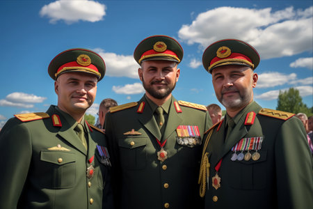 Military officers in formation with rifles during a ceremony. Honoring military service and discipline.