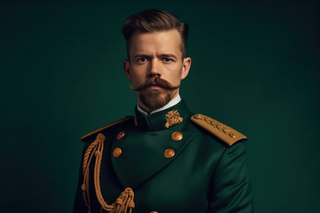 Powerful leader in outfit commanding a totalitarian group. Concept Totalitarian regime, Military leader