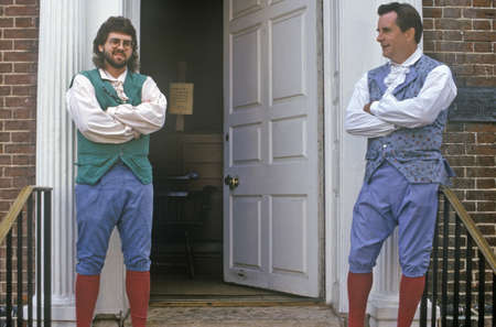 Two waiters pose in front of Gadsby's Tavern Museum in Old Town Alexandria, Alexandria, Washington, DC
