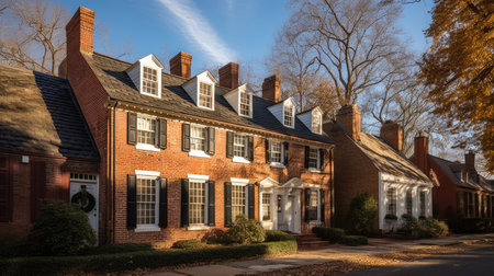Williamsburg, Virginia, U.S.A - June 30, 2020 - A beautiful colonial house on the street