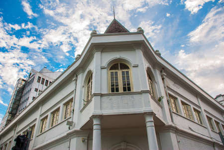 Police station against a blue sky with clouds. Kuching. Sarawak Borneo On the street