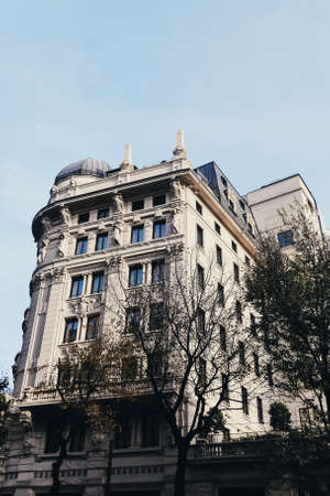 Milan, Italy circa January, 2020: Classic European architecture and historical buildings on the city center streets of Milan in Lombardy region in Northern Italy
