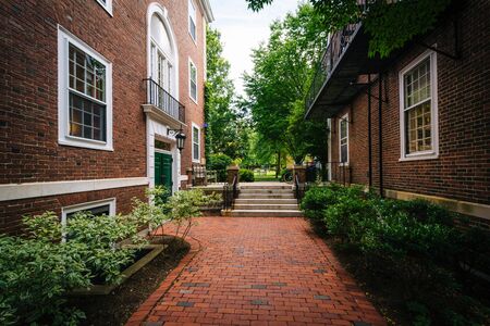 Brick walkway and buildings at Harvard Business School, in Boston, Massachusetts.