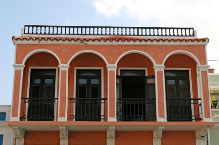 Old world building of orange stucco and arches