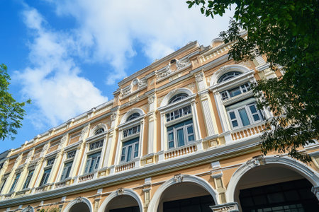 Europe style building yellow color with blue sky in Bangkok,Thailand