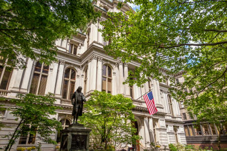 American flag on the Old City Hall building in Boston, Massachusetts, USA