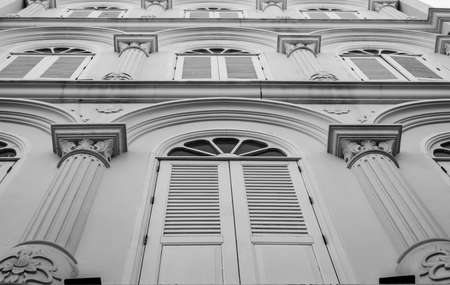 Old building facades, Songkhla province, Thailand Black and white