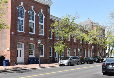 Alexandria, VA - April 20, 2021: Back Side of City Hall on Cameron Street in Old Town Alexandria