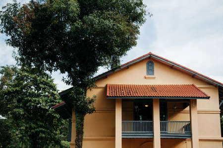 GeorgetownPenang/Malaysia - Feb 15 2020: City Hall with green tree.