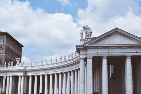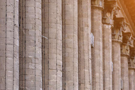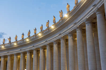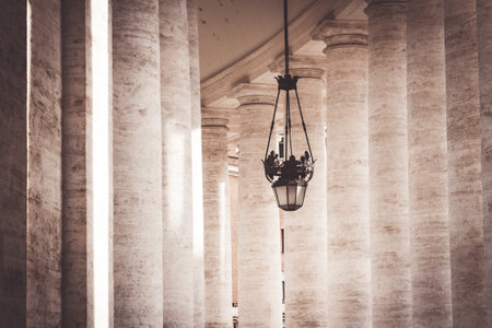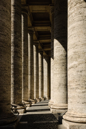 Colonnade of St Peters Square in Vatican City. Row of Old Big columns.
