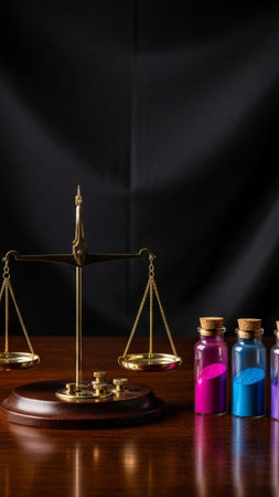 This captivating image features two colorful transparent spheres resting on a balance scale, symbolizing equality and contrast against a sleek background.