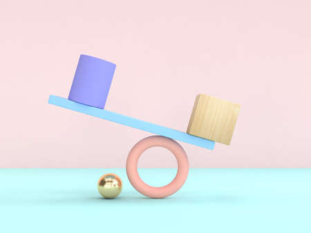 Minimal concept with a stick swingscale and colorful geometric figures