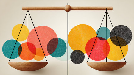 Business Equilibrium Strategy Visual with Modern Balance Scale Illustrating Balance and Harmony