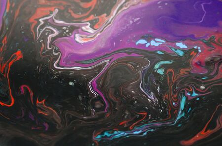 Fluid art texture. Abstract background with iridescent paint effect. Liquid acrylic artwork with artistic mixed paints. Can be used for baner or wallpaper. Black, purple and green overflowing colors