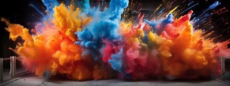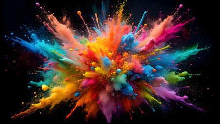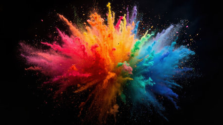 A vibrant explosion of colorful powder against a dark background, creating a dynamic display