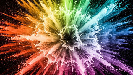Paint explosion with rainbow colors, vibrant splashes in motion