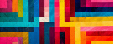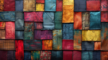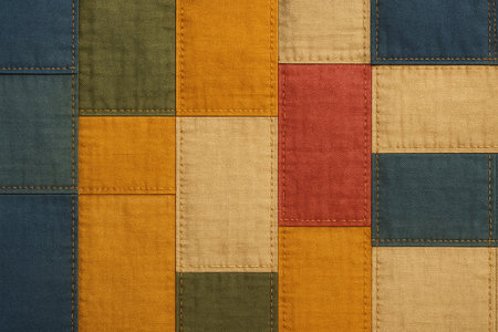 Colorful Fabric Patchwork Background with Vibrant Textures and Stitches