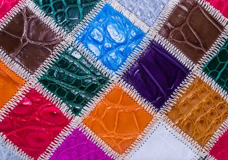 A detailed close-up of a colorful patchwork fabric showcasing intricate stitching techniques. The vibrant colors and patterns create a visually appealing texture perfect for design inspiration.