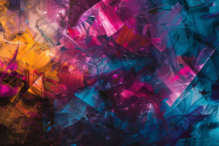 This vibrant abstract artwork features a dynamic explosion of colors and shapes, creating an energetic and captivating visual experience. Perfect for modern decor.