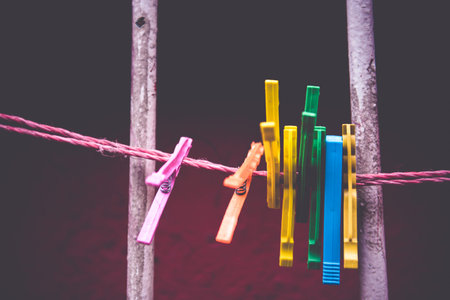 clothespins on a rope outdoors. macro