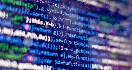 Abstract background of computer program code on monitor. Internet and technology concept.