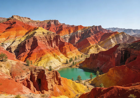 Stunning Colorful Rainbow Mountains Landscape Panoramic View Striped Rock Formations in Desert