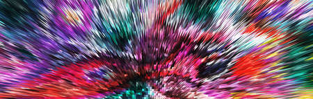 Dynamic glitch effect produces chaotic digital noise in vibrant colors