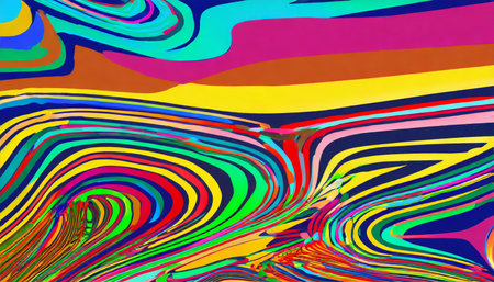 A vibrant digital canvas showcasing flowing waves of multicolored stripes with an abstract, artistic flair.. AI Generation
