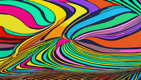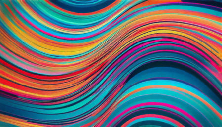 Dynamic abstract pattern with colorful waves and stripes, creating a futuristic and artistic feel. Creative flow of bright colors.