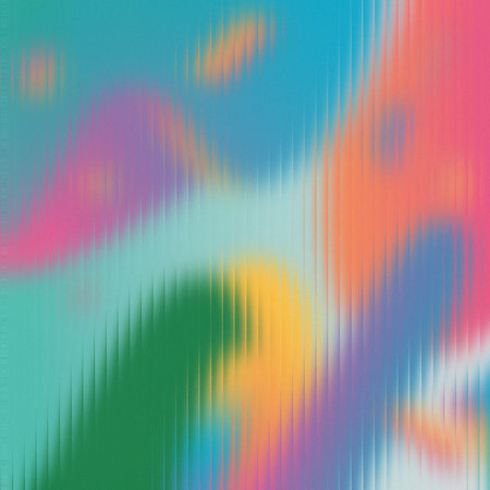 Soft abstract shapes in teal, orange, pink, and blue with vertical lines. Clear details and vibra...