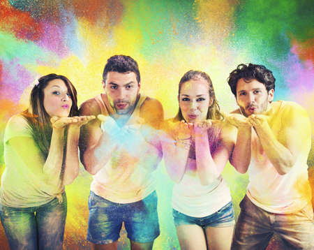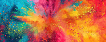 Banner of abstract colorful background. Pattern of bright festive burst of multicolored powder in Holi festival. Splash of color paint