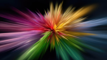 This abstract image features a vibrant explosion of colors with dynamic rays and patterns, creating a sense of energy and movement for creative projects.