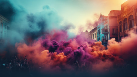 Vibrant Colored Powder Explosion on Solid Background - Ai Generated