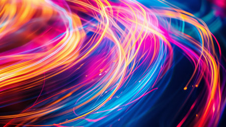Capture the essence of motion with vibrant abstract light trails. This dynamic image features swirling colors and glowing lines that convey energy and creativity. Perfect for modern design projects.