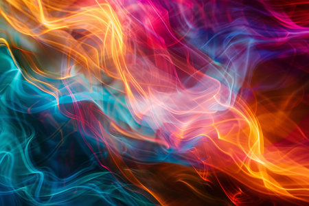Vibrant abstract background showcases flowing colorful light waves, creating a dynamic visual experience ideal for artistic projects and design applications
