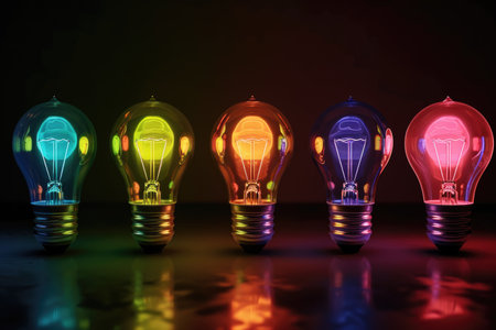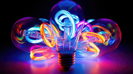 Colorful fluorescent light bulbs on a dark background.