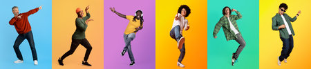 Diverse group of individuals joyfully expressing lifestyle and creativity