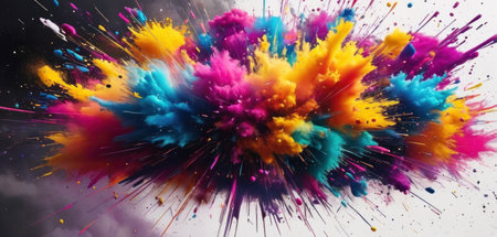 Colorful paint explosion, capturing the dynamic and energetic burst of colors