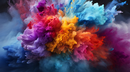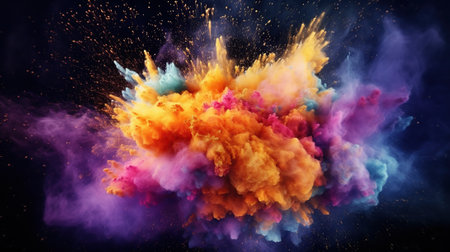 Colorful powder explosion in various shades, creating an energetic scene filled with vibrant hues, showcasing artistic expression and dynamic movement in a captivating manner, AI generated