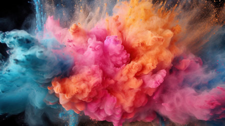 Colored powder explosion on black background. Colorful dust cloud. generative ai