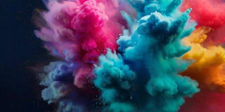 Abstract splash of vibrant colored powders forming a cloud of motion and texture, like a Holi celebration