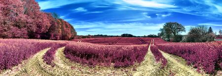 Beautiful and colorful fantasy landscape in an asian purple infrared photo style