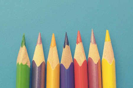 Colorful ground pencils group on a blue background