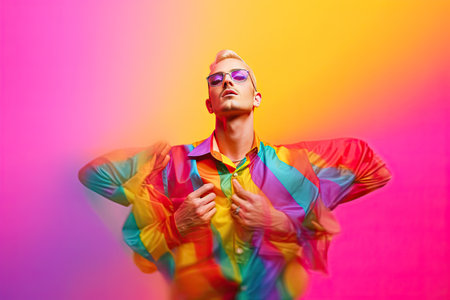 A man standing in front of a colorful wall. Generative AI image.