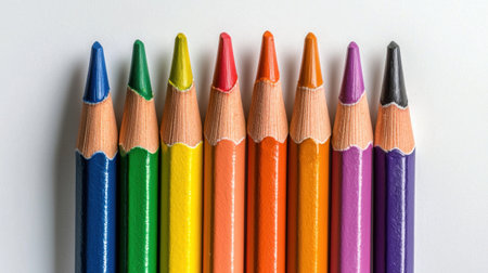 Brightly colored pencils neatly lined up against a clean white background. Ideal for representing creativity, education, and artistic expression in various projects.