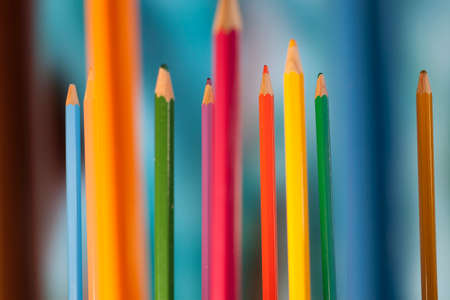 Colorful pencils as a background. Close up. Selective focus.