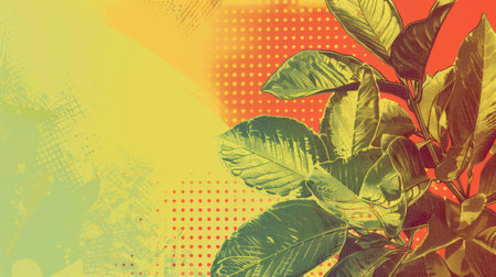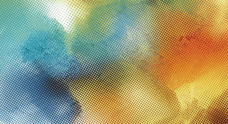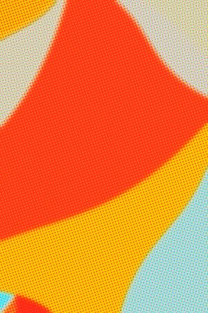 Bright halftone texture blending colors with abstract forms and shapes