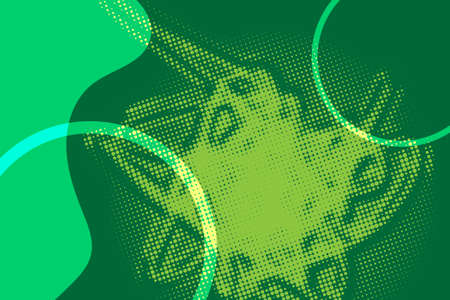 A lively halftone gradient flows through the composition, showing varying shades of lime green against a soft white backdrop. This design exudes freshness and energy.
