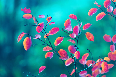 Vivid red leaves bush autumnal